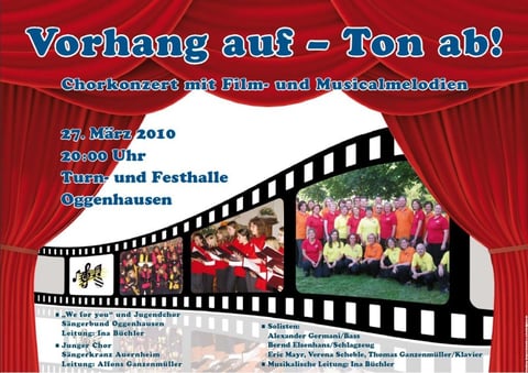 Unter dem Motto „Vorhang auf - Ton ab!" haben der Jugendchor Oggenhausen, der Chor „We for you" Oggenhausen und der Junge Chor Auernheim zum Frühjahrskonzert ein interessantes Programm mit Film- und Musicalmelodien zusammengestellt.