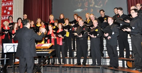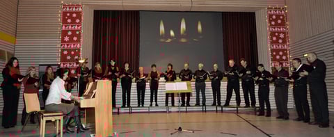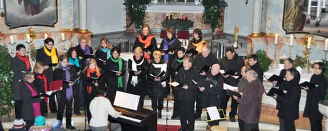 "Von Ferne klingt leise der Engel Gesang" - mit sanften Klängen zur Melodie des traditionellen englischen Weihnachtsliedes "Away in a manger" empfing der Chor die zahlreichen Gäste zum Konzert- und Theaterabend. Zum Konzertauftakt gab es weitere Weihnachtslieder, bei denen der Chor von Thomas Ganzenmüller jun. am Klavier begleitet wurde.