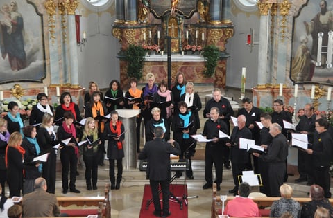 "Jetzt sengat se scho wieder englisch!" Diesen Vorwurf bekam der Junge Chor seit seiner Gründung vor zwölf Jahren zuweilen zu hören. Um dem zu entgegnen hatte sich Chorleiter Alfons Ganzenmüller unter dem Titel "Lyrics und Lieder" etwas Besonderes einfallen lassen. Zu bekannten Popballaden trugen Madeleine Bauer und Magdalena Ganzenmüller die deutschen Übersetzungen der Songtexte vor. Die musikalische Begleitung kam von der "Aurnamr Band". So waren zunächst zwei Beatles-Klassiker "Hey Jude" und "Let it be" zu hören, danach zwei Titel von Elton John "Circle of life" und "Can you feel the love tonight" und zum Abschluss aus dem Film "Shrek" das großartige "Hallelujah" von Leonard Cohen.